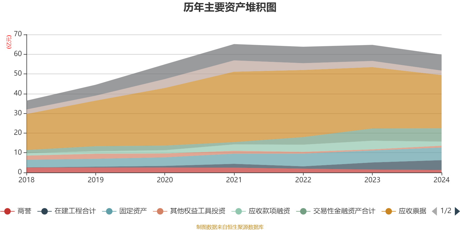 资产重大变化方面,截至2024年末,公司应收款项融资较上年末减少52.25%,占公司总资产比重下降3.28个百分点;应收票据及应收账款较上年末减少13.26%,占公司总资产比重下降2.91个百分点;在建工程合计较上年末增加37.96%,占公司总资产比重上升2.74个百分点;交易性金融资产合计较上年末增加8.32%,占公司总资产比重上升1.66个百分点。