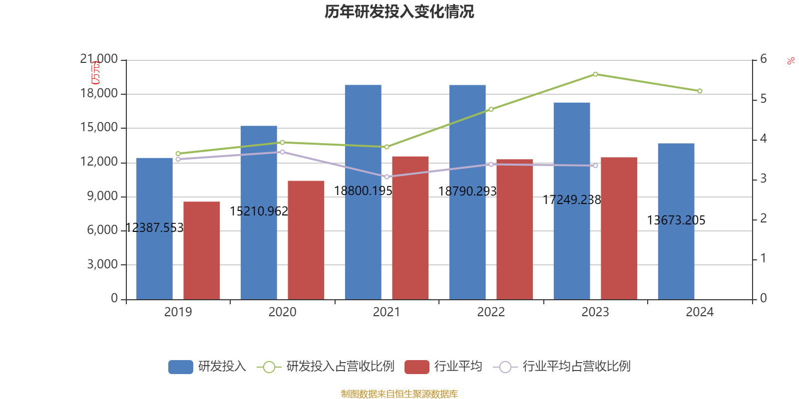 2024年全年,公司研发投入金额为1.37亿元,同比下降20.73%;研发投入占营业收入比例为5.22%,相比上年同期下降0.42个百分点。此外,公司全年研发投入资本化率为0%。