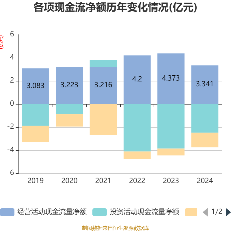 截至2024年,公司经营活动现金流净额为3.34亿元,同比下降23.6%;筹资活动现金流净额-1.27亿元联丰优配 ,同比减少6705.49万元;投资活动现金流净额-2.49亿元,上年同期为-3.86亿元。